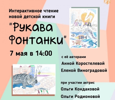 7 мая в детской библиотеке на Загребском бульваре авторы - Елена Виноградова и Анна Коростелева («Школа в Кармартене», «Сказания о Меджекивисе», «Цветы корицы, аромат сливы») - будут читать еще не напечатанную (и чуть было не сказали — ненаписанную) книгу «Рукава Фонтанки». Это первая часть большого некоммерческого проекта доброй детской литературы «Дети Крайсветы».